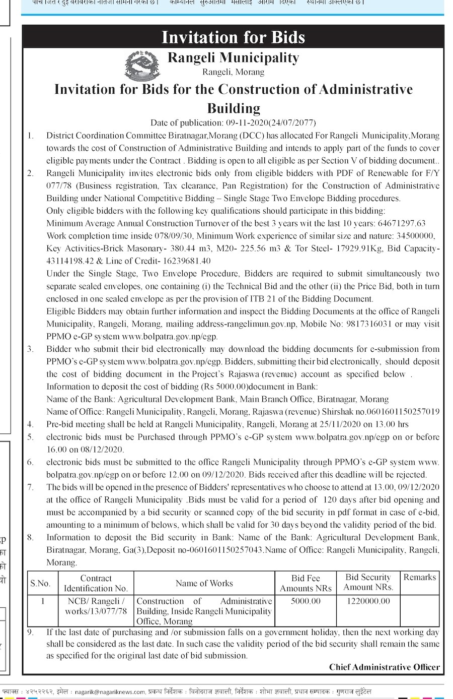 Construction of Administrative Building inside Rangeli Municipality Office.